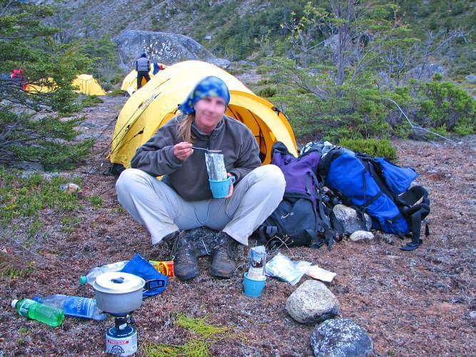 Die Nacht war kalt. Auf dem Zelt ist eine dünne Eisschicht. Das Wetter ist super, die Sonne scheint warm. Wir laufen am Fluß entlang, den wir einige Male durchqueren müssen. Nach zwei Stunden machen wir eine Pause. Ab hier wird es steiler, hinauf auf einen Lavastrom, zwischen zwei schmalen Muränen durch. Wir erreichen das Ende des Lavastroms und erblicken den Descabezado Grande. Leider bleibt uns nicht die Zeit, diesen wie ursprünglich geplant zu besteigen und so bleibt es nur beim Blick auf den mächtigen Vulkan mit über 3.951 m Höhe…